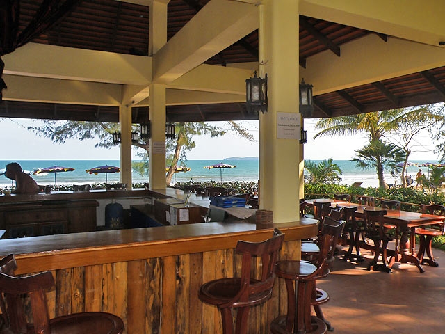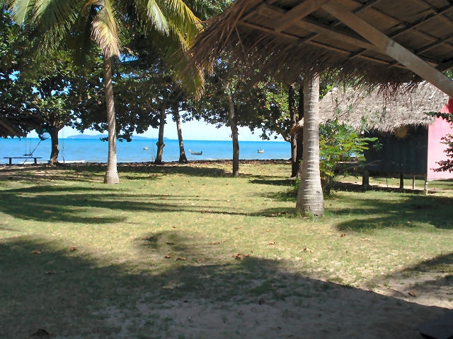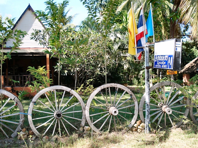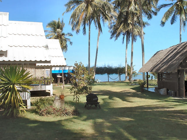 Lola Bungalow (ลอร่า บังกะโล) (SuanLuangBeach) Preise: 250 bis 300 Baht Lola Bungalow. In einem großen Palmengarten am Strand, im Schatten vieler Laubbäume, stehen locker verteilt 10 sehr kleine, einfache, bunt bemalte Hütten mit Hängematte auf der Holzveranda. Ausgestattet mit Fan, Moskitonetz und eigenem Bad/WC. Zwei Minihütten aus Sperrholz mit Matratze auf dem Boden und löchrigen Moskitofenstern gibt's für je 150 Baht, drei neue, geflieste Steinbungalows für 300 Baht. Das kleine Restaurant hat eine kleine Auswahl an Thaifood, aber auch Rührei und Toast zum Frühstück. Es herrscht eine lockere, familiäre Atmosphäre, viele Stammgäste und Langzeittraveller kommen hierher. Der Besitzer Sofa spricht sehr gut englisch, hat gerade das Haupthaus renoviert und pink gestrichen, gibt Langzeitrabatt und vermietet Mopeds. Suan Luang Beach, Bang Saphan Yai, Prachuap Khiri Khan 77140 Tel.: 032-691963 oder 081-1529582 - Fax.: 032-817120 Bungalows