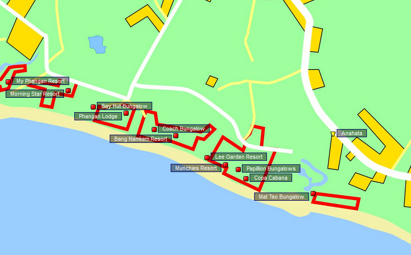 Copa Cabana (โคป้า คาบาน่า) (BanKhaiBeach) Preise: 100 bis 500 Baht Copa Cabana befindet sich gerade im Wandel. Die alten, heruntergekommenen Hütten werden nach und nach durch neuere, größere ersetzt. Ebenso entsteht ein Pool.Das Thai-australische Management ist nett und das Personal hilfsbereit. Moo 4, Ban Tai Beach, Ban Tai, Koh Phangan, Surat Thani 84280 Tel.: 081-0841889 oder 081-8919573 Bungalows >>