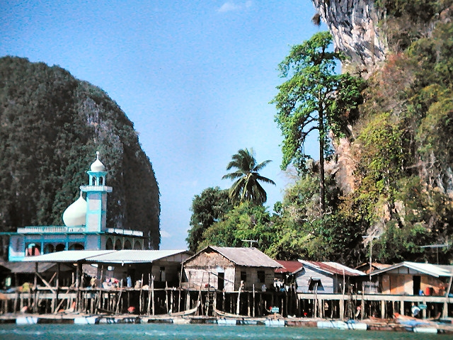 Koh Panyi (เกาะปันหยี) (PhangNga) Koh Panyi is a small island in the Bay of Phang Nga. Koh Panyi consists of a tall limestone hill and a small plain land area. This is a Muslim community. It is well known in Thailand for being built on stilts by Indonesian fishermen.The population consists of roughly 200 families or between 1500 and 2000 people who descended from two seafaring Muslim families from Java. The settlement at Koh Panyi was established at the end of the 18th century by Indonesian fisher families. Around the village are floating baskets to keep fish in the water. There are also many restaurants, a school, souvenir shops and a few tourist residences on the island. The Muslim people here are still today fishermen and sellers of souvenirs and preserved seafood. Their main income nowadays derives from being a "must" stopover for the many tour boats passing to the famous James Bond Island. Koh Panyi is in Phang Nga Bay, which is situated between Krabi and the island of Phuket in the south of Thailand. Koh Panyee, Phang Nga 82000